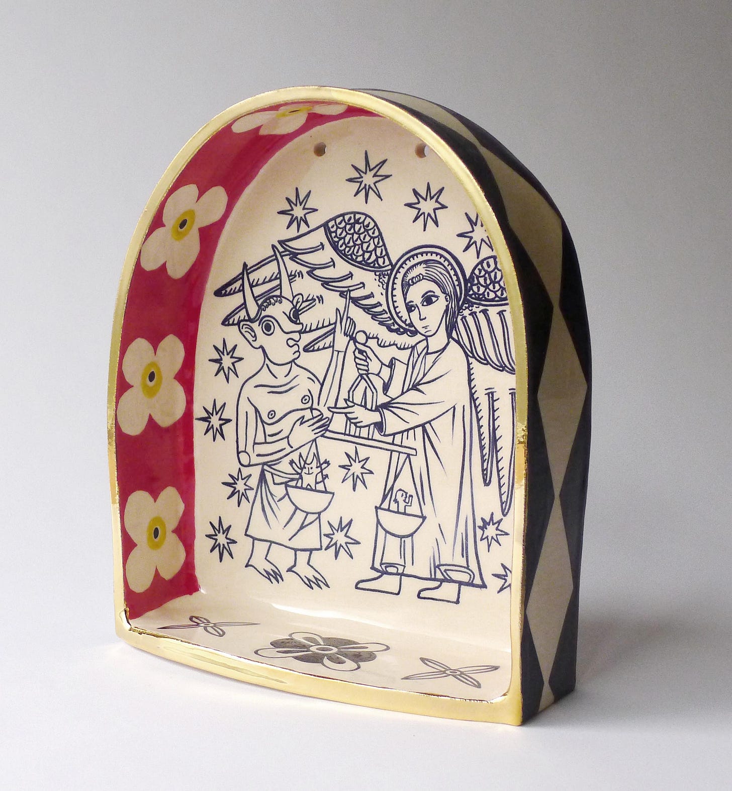 One of the central themes I’ve been exploring lately is psychostasis—the weighing of souls. This symbolic moment, in which the soul is assessed after death, often depicted as being measured on a divine scale, has held a persistent place in religious and mythological imagery across cultures. It is a scene that appears frequently in Romanesque iconography, where Saint Michael, faces off against the devil, scale in hand, ready to settle the ultimate score. But this idea of a post-mortem judgment isn’t uniquely Christian, and we find it already in ancient Egyptian visual culture, with the heart weighed against the feather of Ma’at, and it pops up across civilizations like an event no one can cram for.