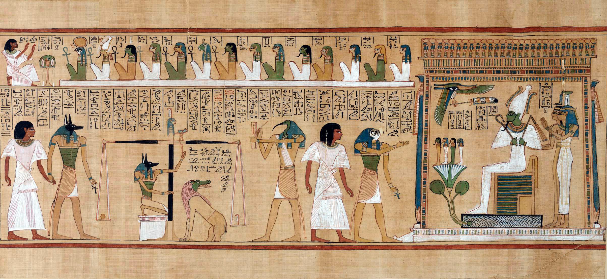 Page from the Book of the Dead of Hunefer, c. 1275 B.C.E. (19th Dynasty), painted papyrus, 40 x 87.5 cm (Thebes, Egypt, © The Trustees of the British Museum, London)
